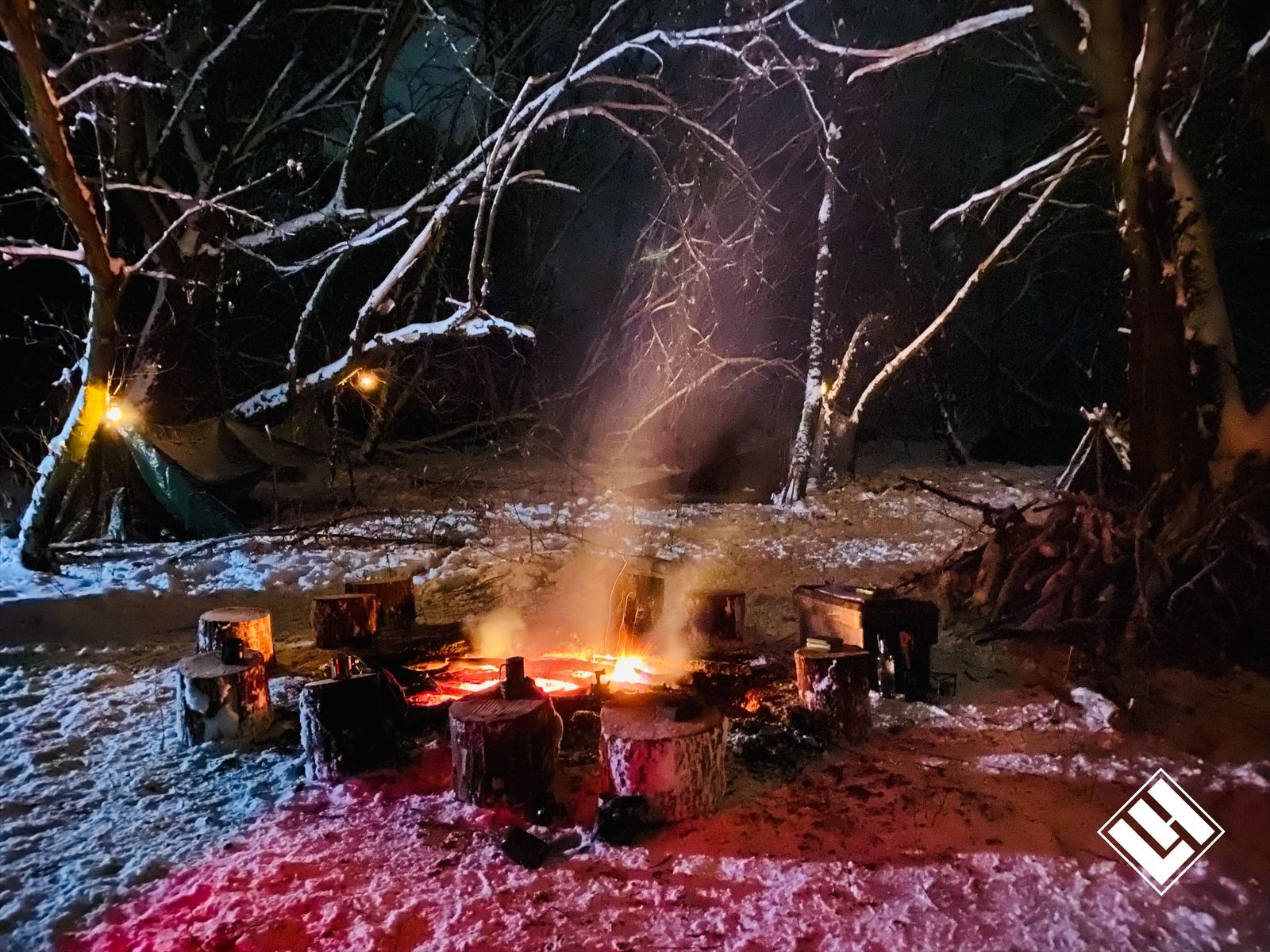 Lassan megérkeztünk a kiindulási ponttól mintegy 17km-re lévő táborhelyünkig, ami a Körös árterében volt. Mivel nem volt sok idő sötétedésig, megfeszített tempóban telt az elkövetkező szűk másfél óra. Két felé vált a csapat és míg az egyik fele tüzelőt gyűjtött, addig a másik menedéket épített, majd csere volt.
